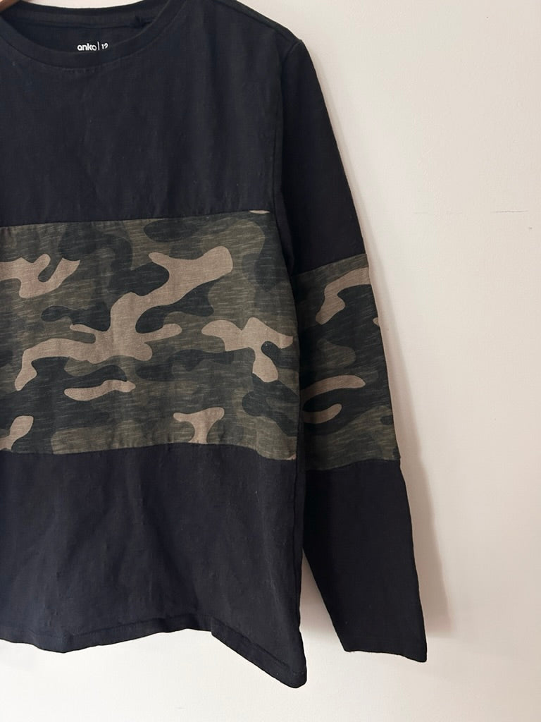 Anko Long Sleeve Black and Camo • 10-12 years *
