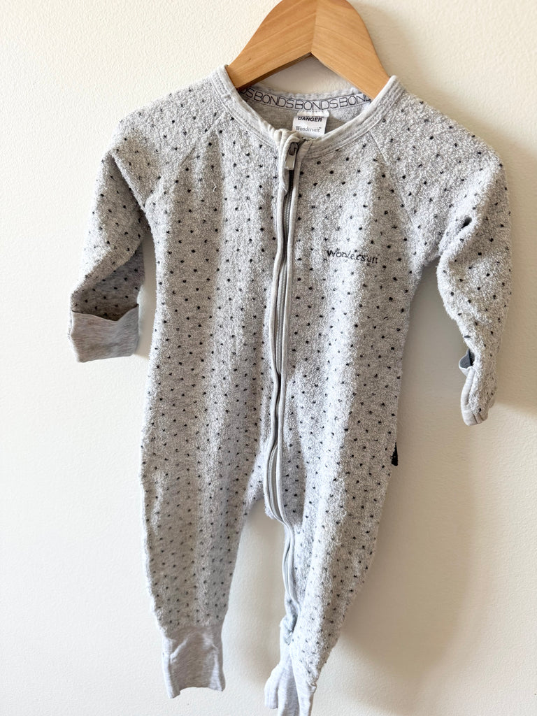 Bonds Fuzzy Terry Grey Polka Dot Wondersuit • 6-12 months