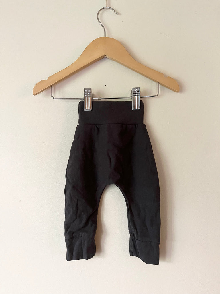Great. Minor wash wear. No pilling. No major visible marks. Wrinkly from storage. These say 0-6 months but look small. These look black but they are a dark grey.