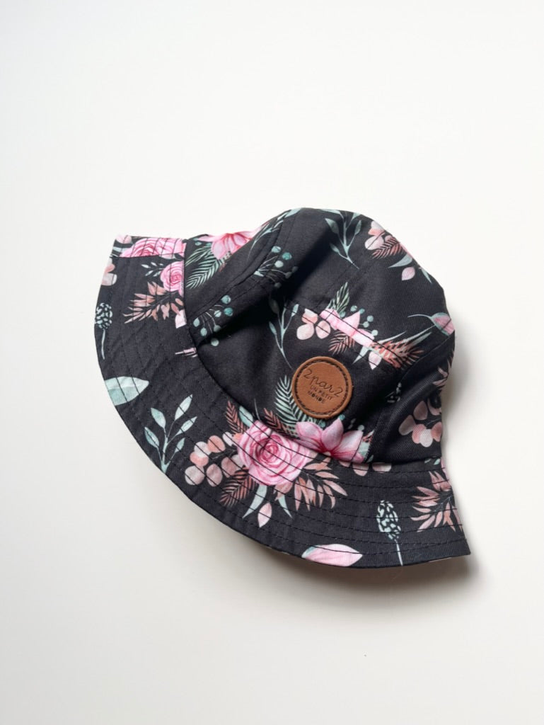 Deux Par Deux Black Floral Bucket Hat • 6-12 months