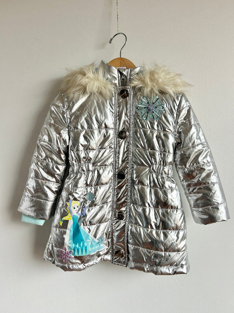Disney Silver Metallic Jacket with Furry Hood • 2-3 years