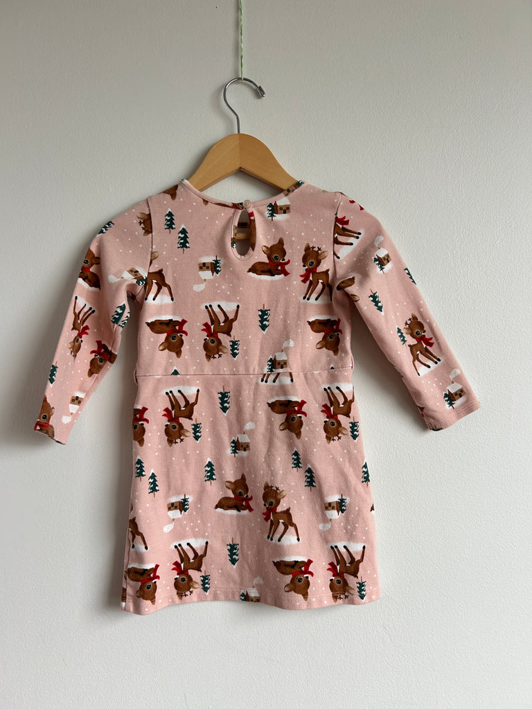 H&M Pink Winter Reindeer Dress • 3-4 years