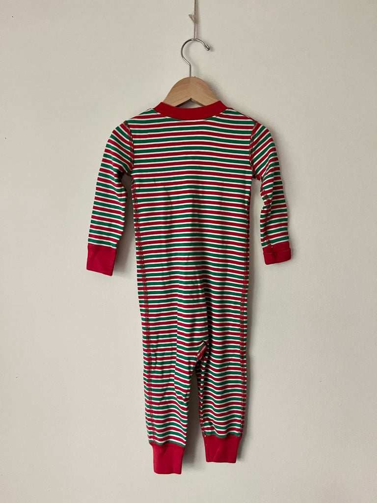 Hanna Andersson Green and Red Striped Sleeper • 2 years
