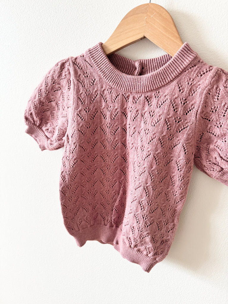 Jamie Kay Pink Eyelet Sweater with Puff Sleeves • 1-2 years