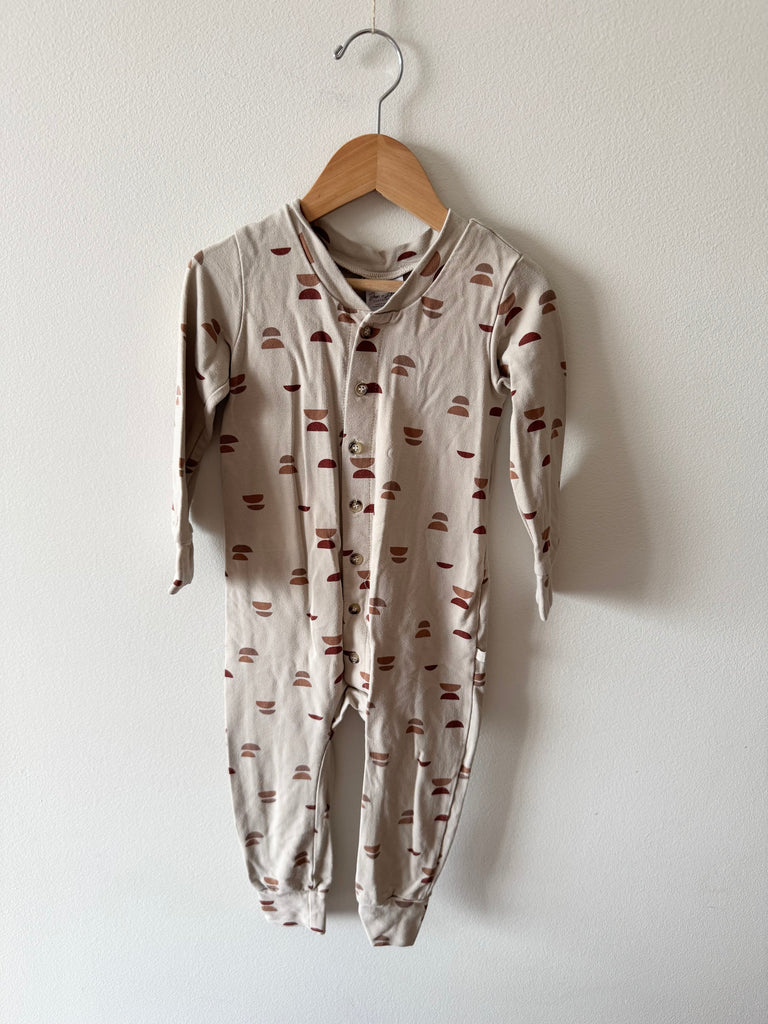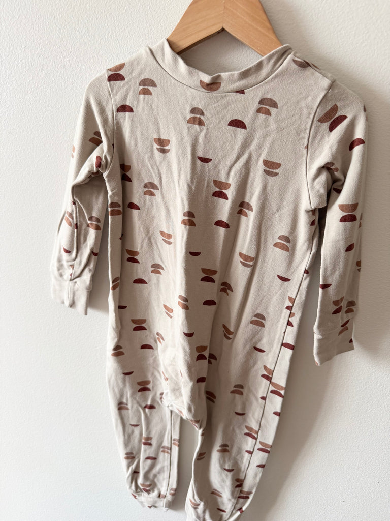 Jax and Lennon Brown 1/2 Moons Patterned Long Sleeve Romper • 18-24 months