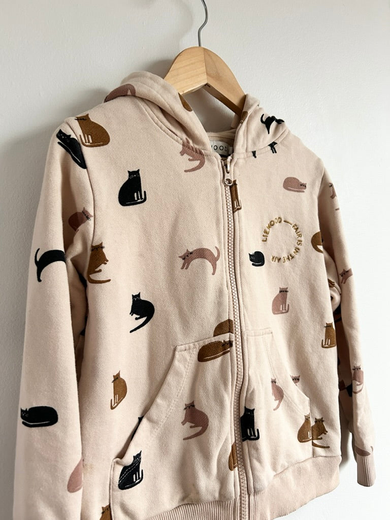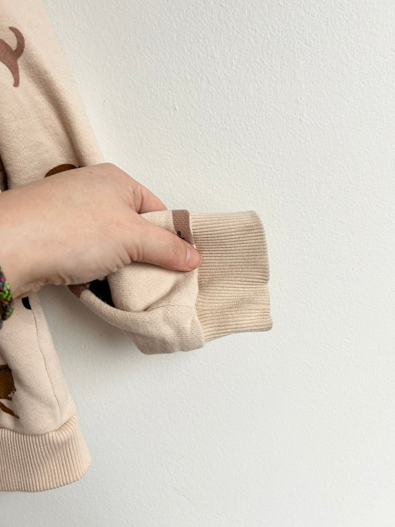 Good. This has some staining as pictured. Nothing major and not hugely noticeable when on. Organic cotton. Labelled 8 but looks flexible. RRP around $80