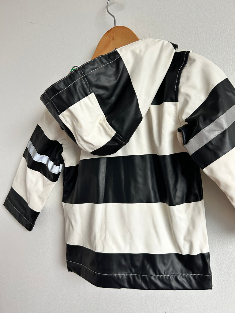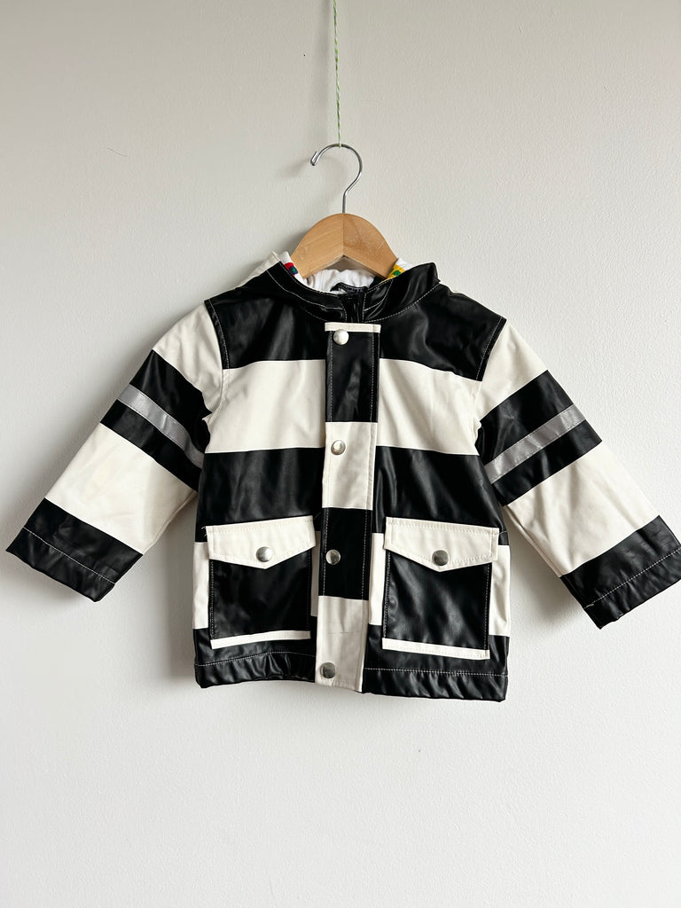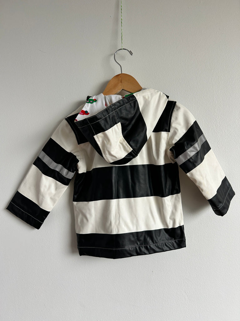 Great, a bit of age wear and a few marks visible on the white. Nothing major. Really cute car print lining!