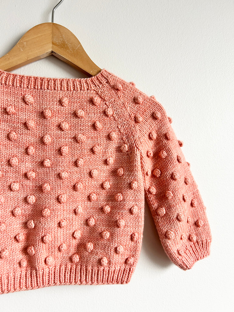 Misha and Puff Grapefruit Pink Merino Popcorn Sweater • 18-24 months