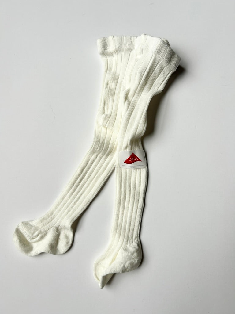 NEW Condor White Ribbed Tights • 0-3 months (000)