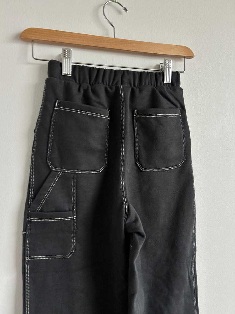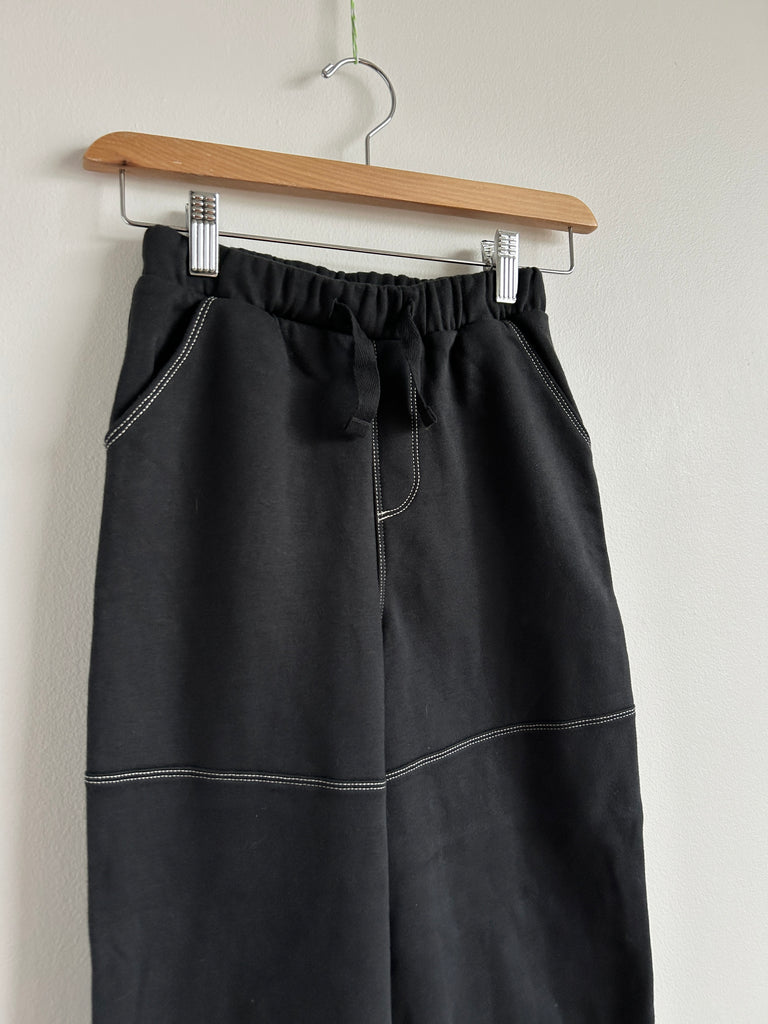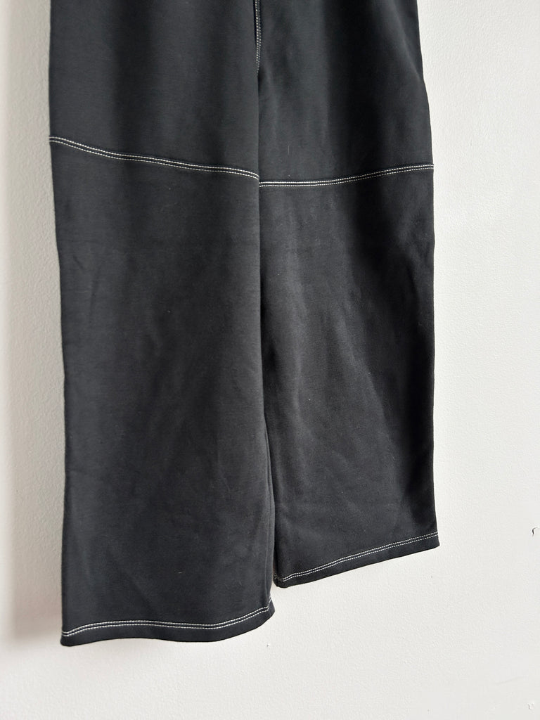 Next Wide Leg Black Soft Drawstring Pants with Contrast Stitching • 6-7 years