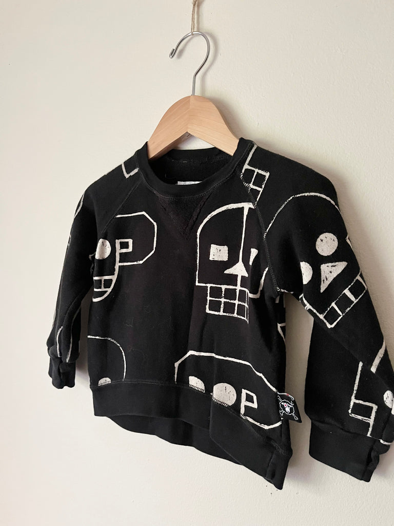 Nununu Black and White Skull Sweatshirt • 6-12 months