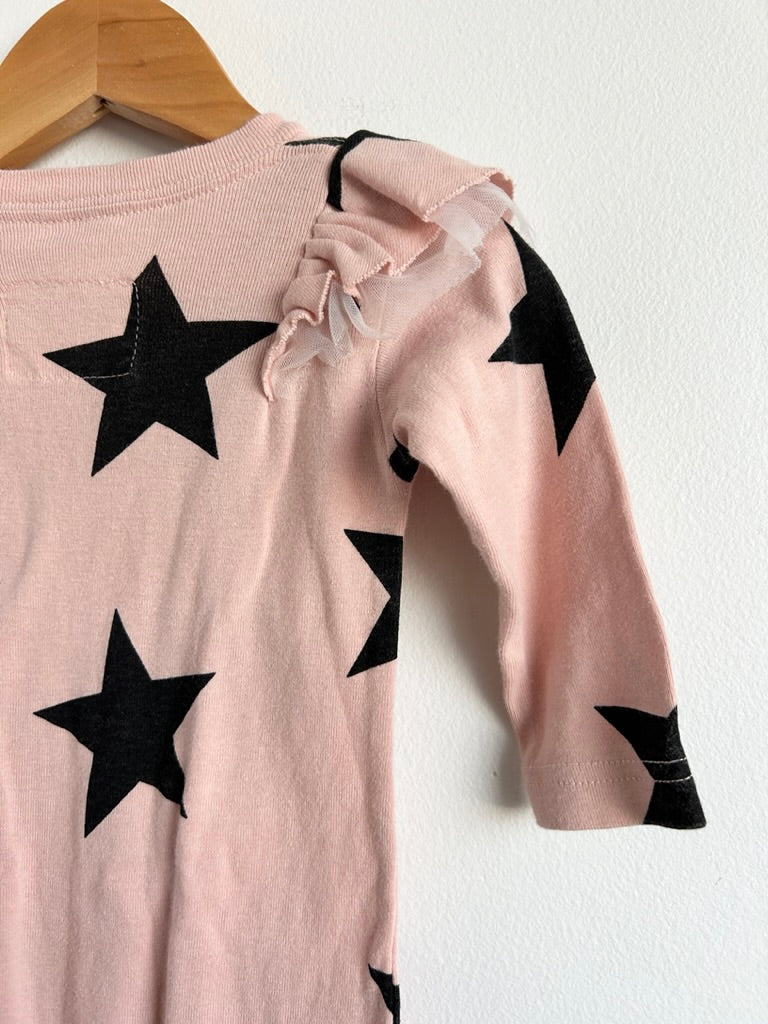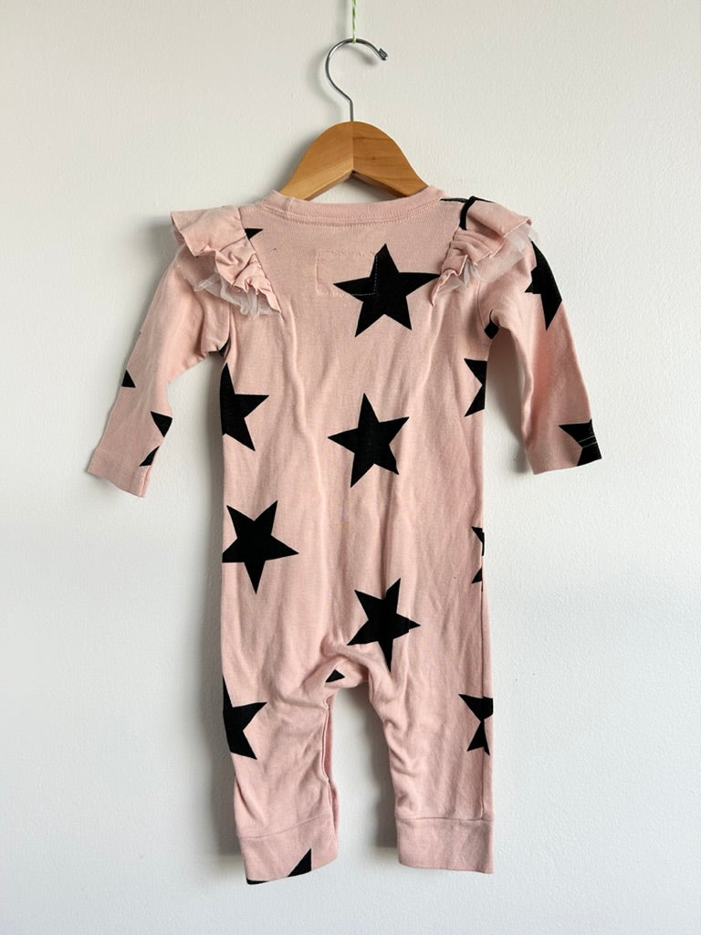 Nununu Pink Star Ruffle Long Sleeve Cotton Romper • 6-12 months