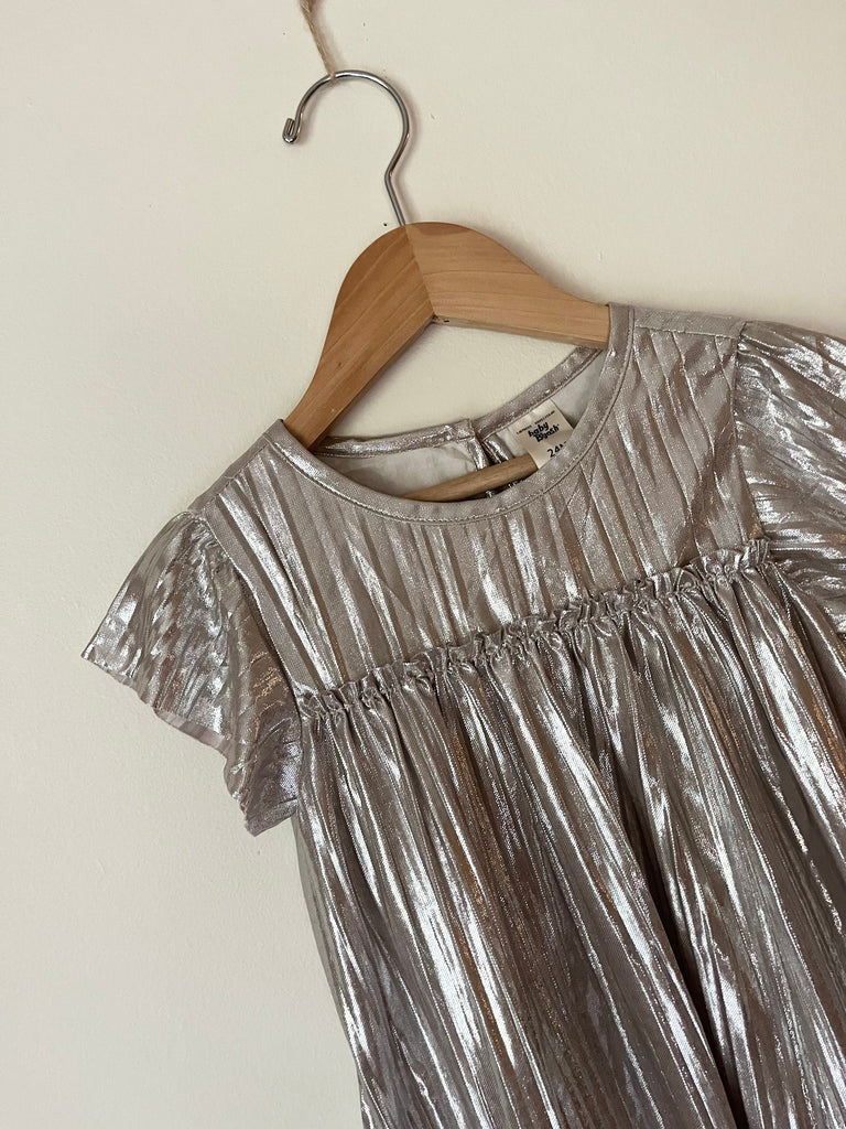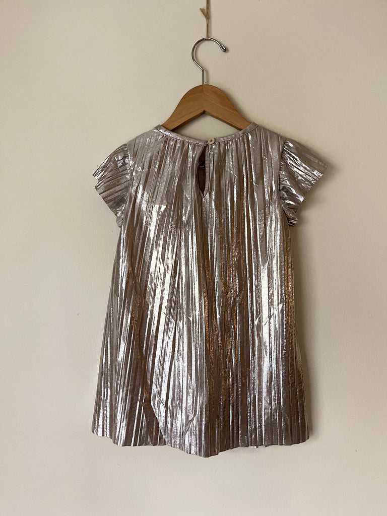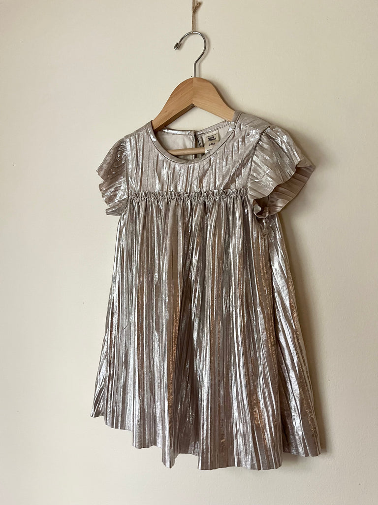 OshKosh Silvery Short Sleeve Pleated Dress • 2-3 years