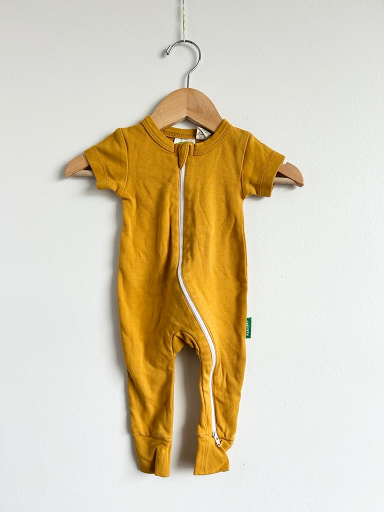 Parade Organics Yellow Shortie Cotton Zip Romper • 0-3 months