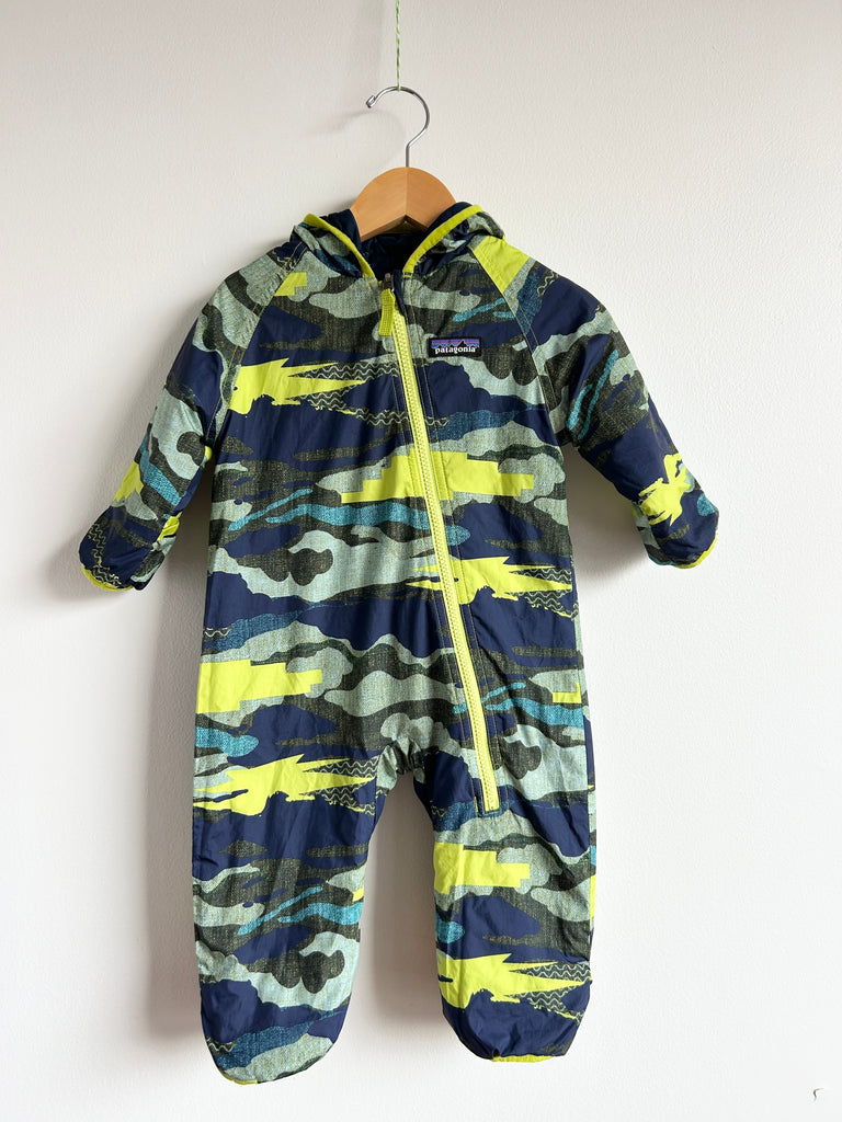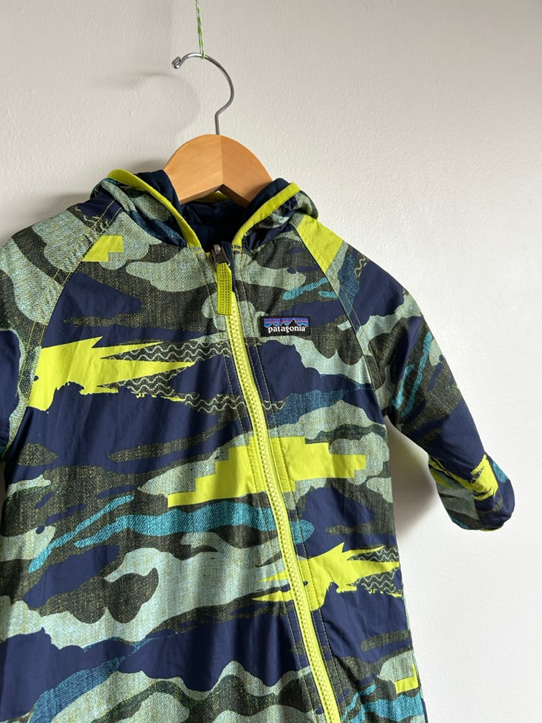 Patagonia Green and Blue Patterned Bunting Suit • 1-2 years