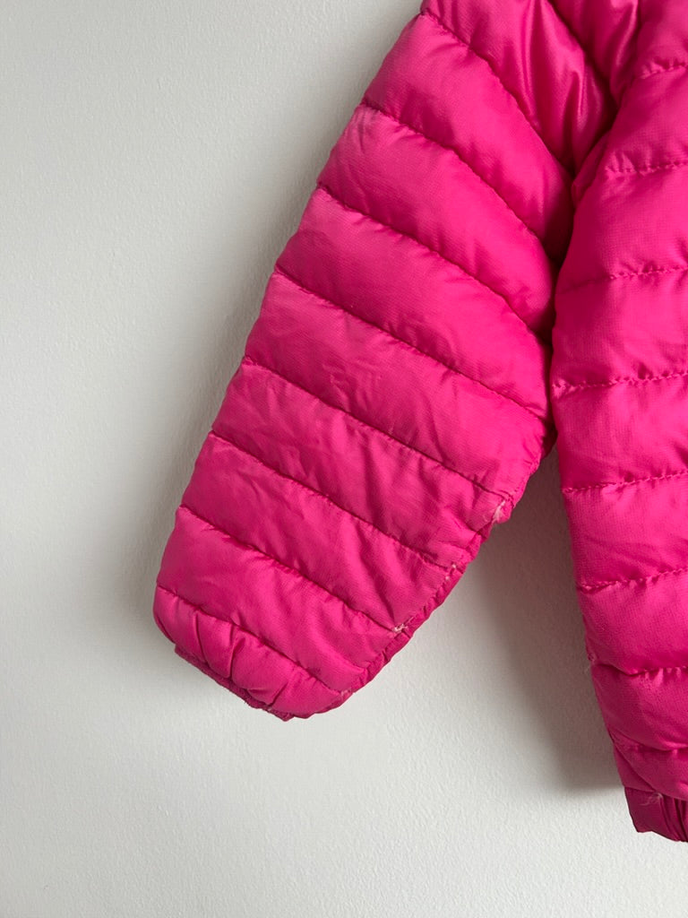 Good. This has a few small holes - repaired for free by Patagonia (check it out! Free repairs for life!) Or with a tiny bit of repair tape. Also good as just a layer or a play condition jacket. Down filled. RRP $135