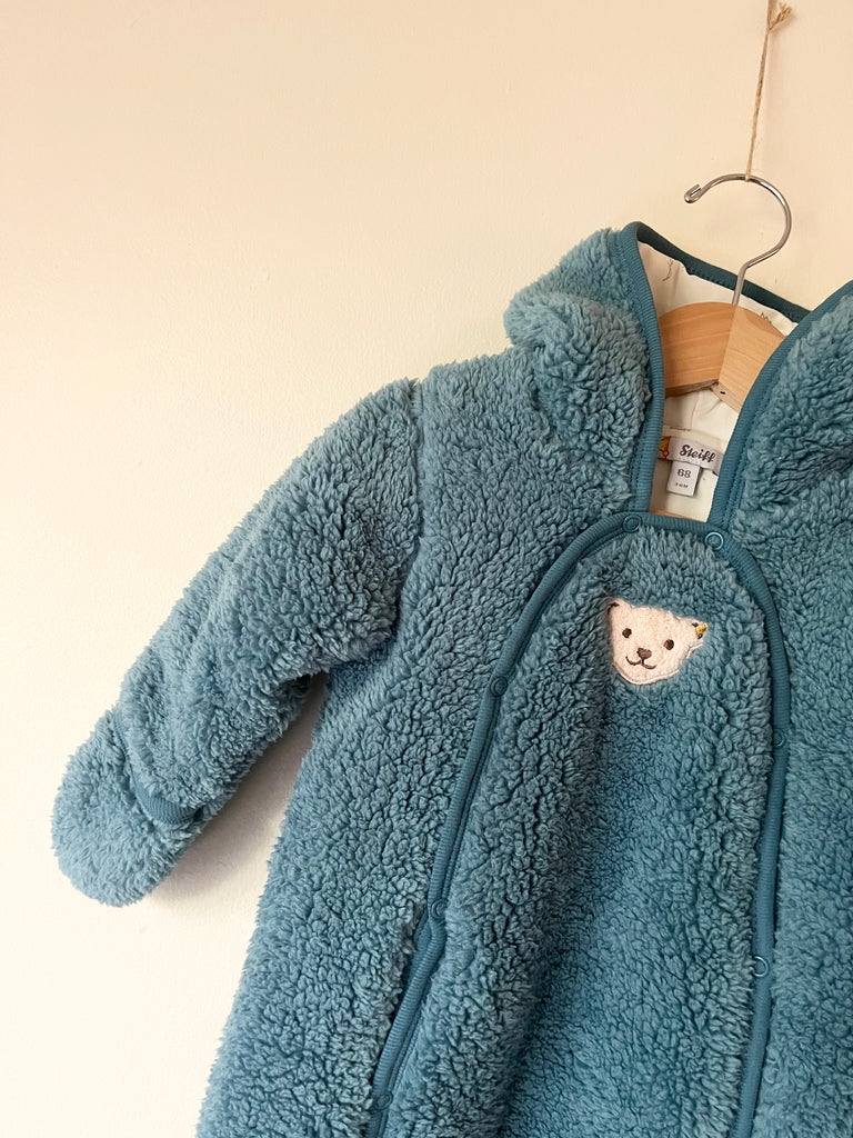 Great. Minor wash wear. No pilling. No major visible marks. Wrinkly from storage. Poly outer, cotton lined.
