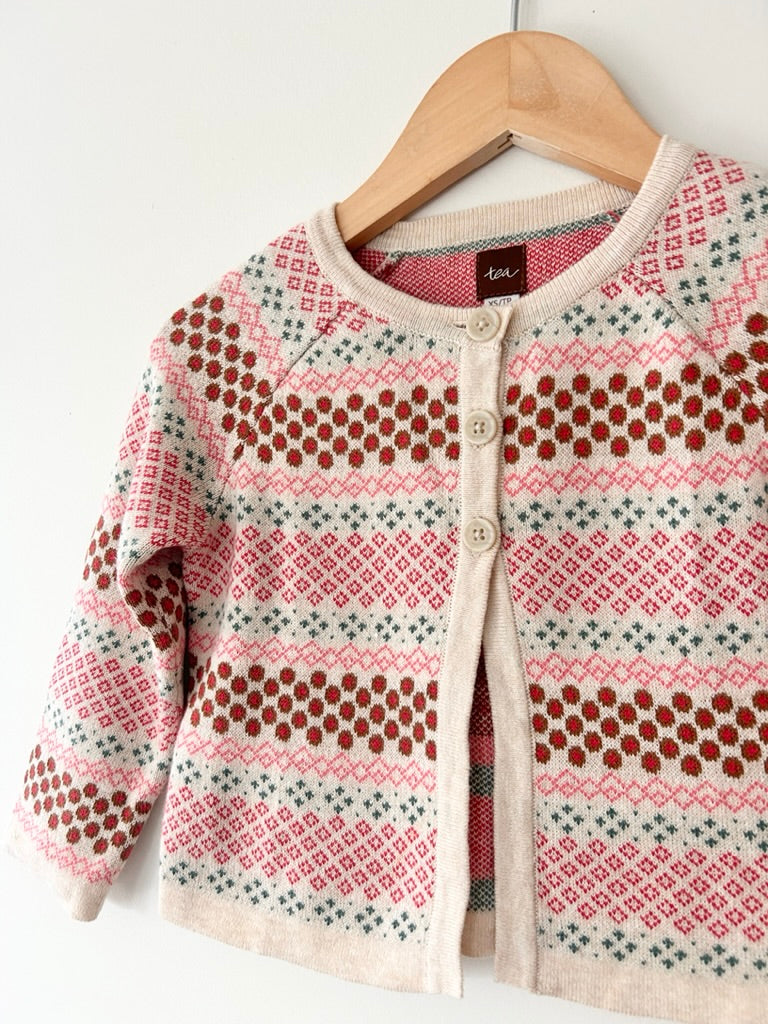 Tea Collection White and Red Patterned Cardigan • 2-3 years *