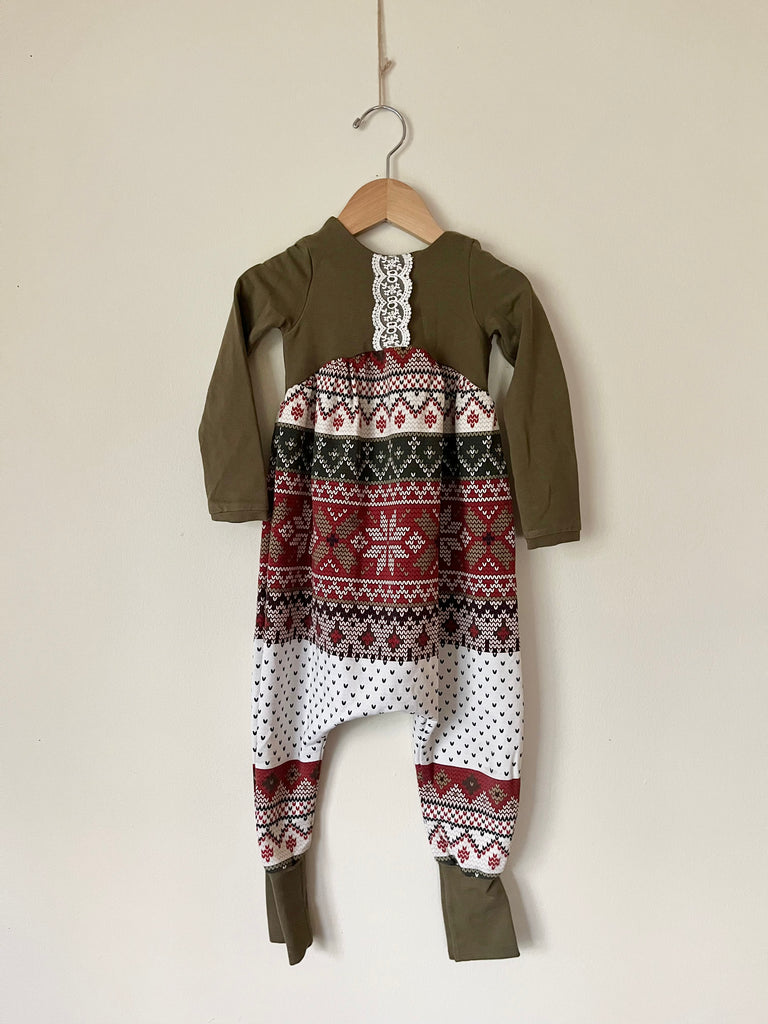 Wings and Roots Drop Crotch Christmas Romper • 2 years