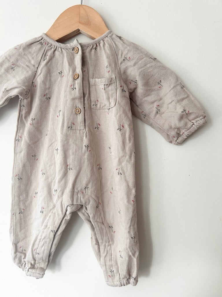 Zara Cotton Brown Long Sleeve Romper • 0-3 months *