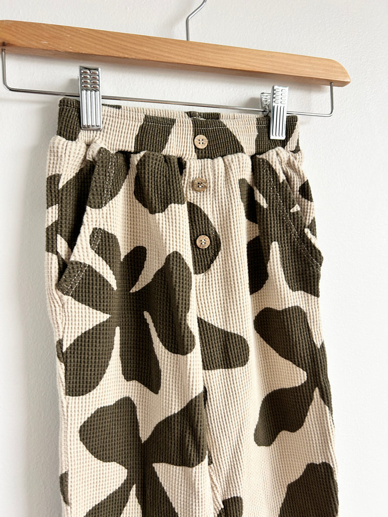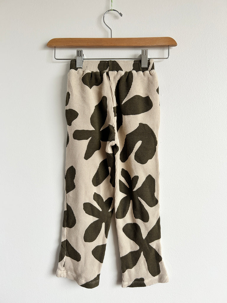 Zara Cream and Green Waffle Big Floral Pants • 4-5 years