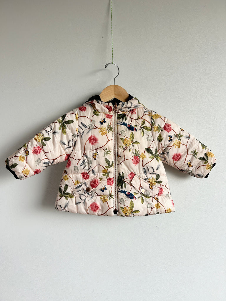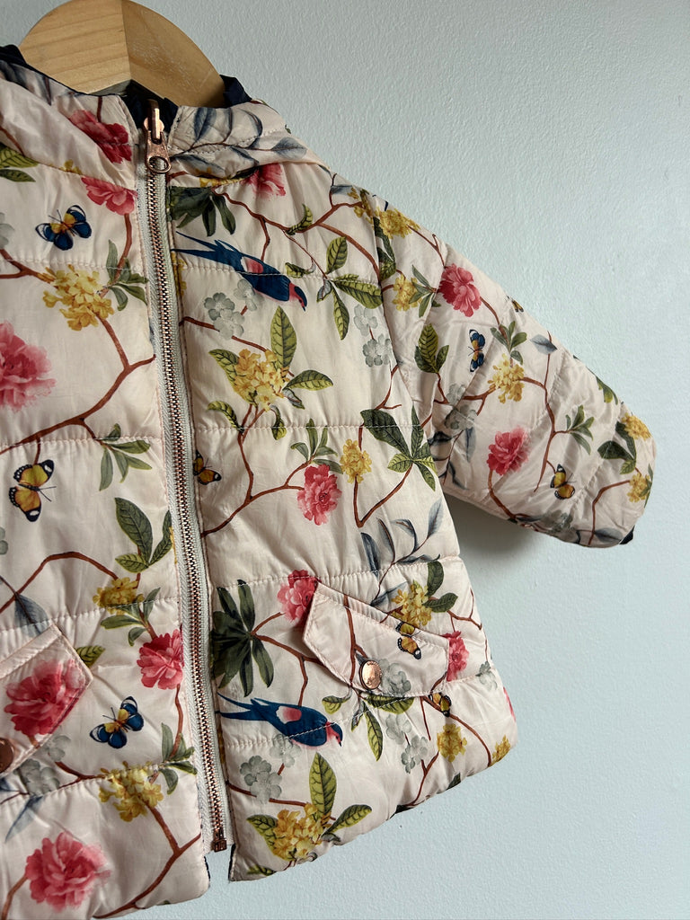 Zara Reversible Navy and Light Pink Floral Puffy Jacket • 6-12 months