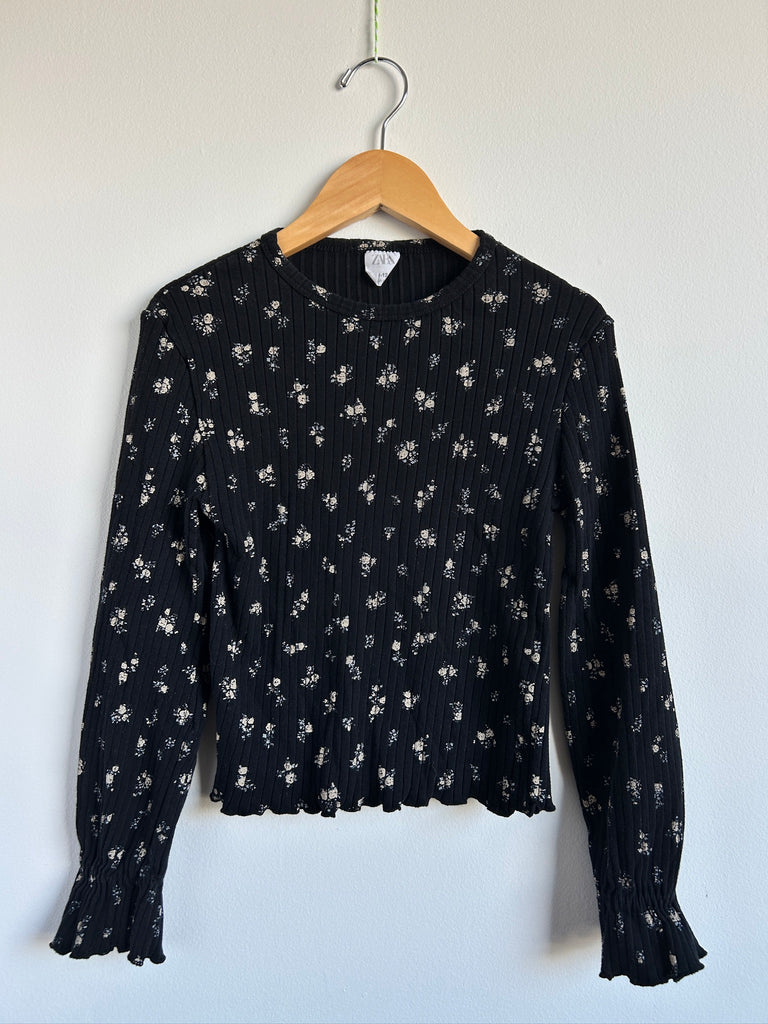 Zara Ribbed Long Sleeve Black Floral Top • 10-12 years
